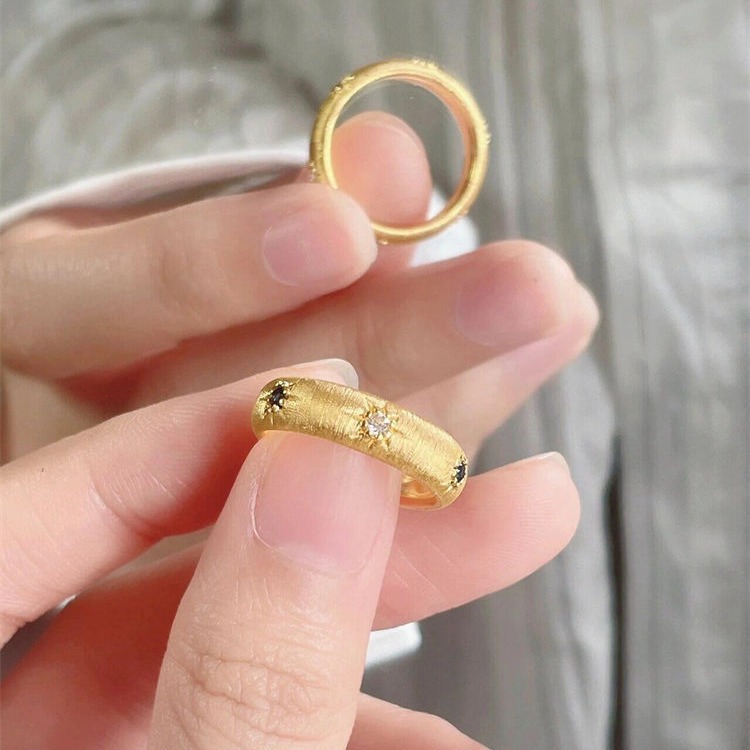 フランスの軽い豪華なフラッシュドリルの糸の八芒星の指輪の女性のinsの豪華な高級感の指環の森系の百合の食事の指の指輪