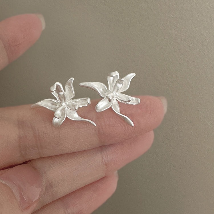 シンプルな銀白アイリスの女性フランスの高級感ピアス