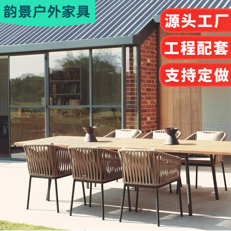 北欧屋外テーブルと椅子庭園露店花園藤椅子組み合わせレジャー露天バルコニー防水日焼け止め屋外家具