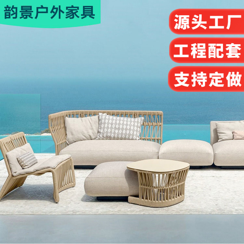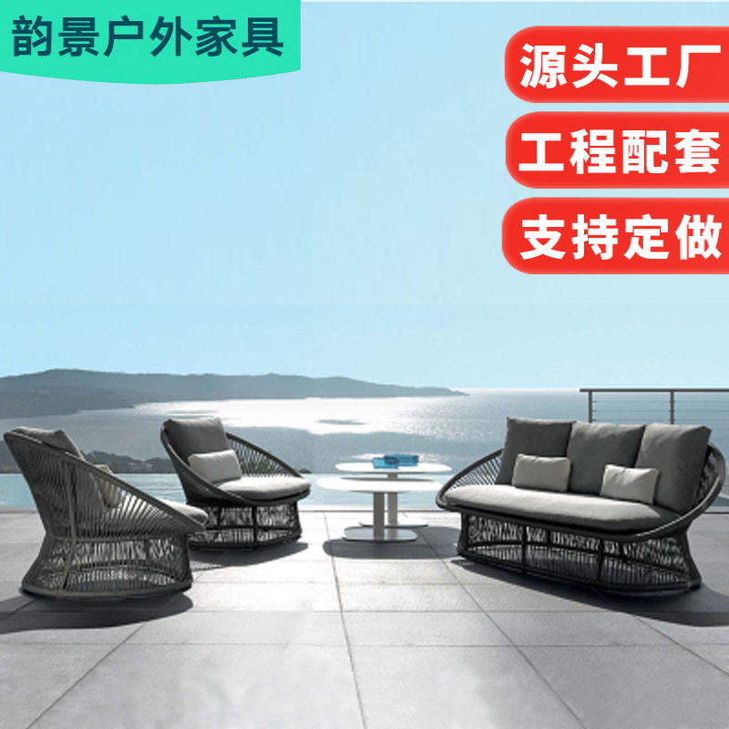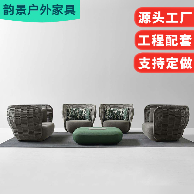 北欧屋外ソファー庭園露店屋外レジャー藤編みソファサンプルルーム販売部別荘ガーデンソファ