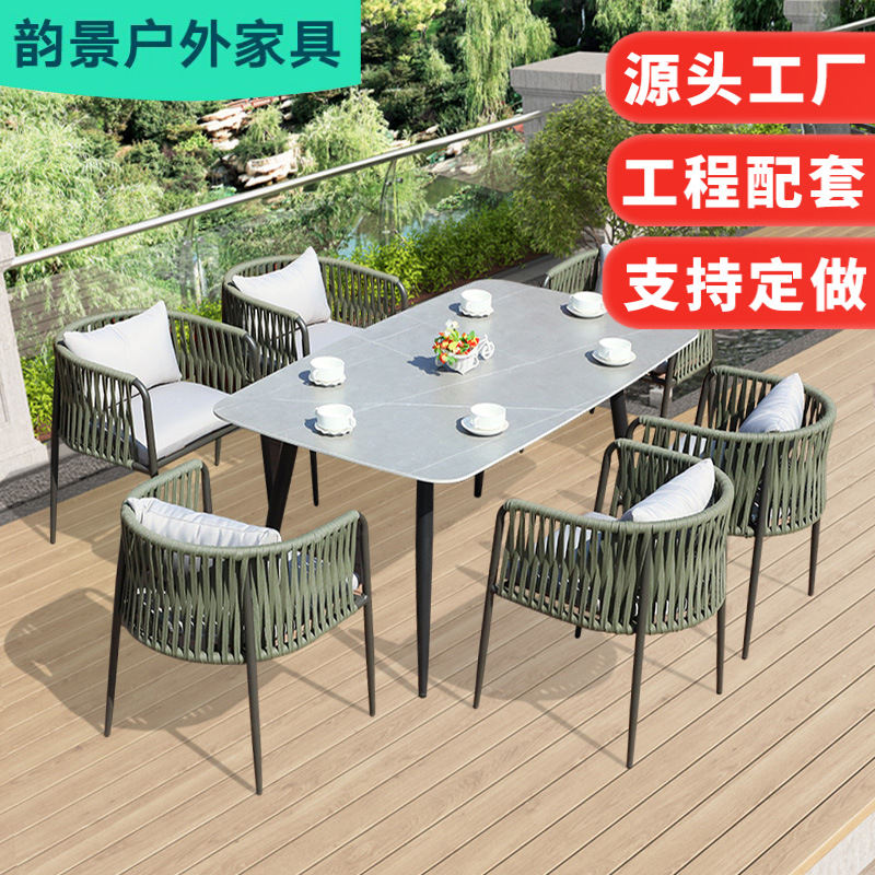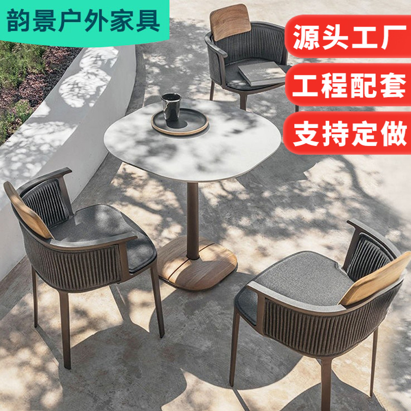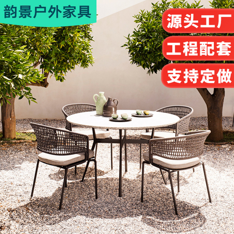 屋外テーブルと椅子の組み合わせ露天レストランバーカフェ藤編み椅子防水日焼け止め庭園露店屋外テーブルと椅子