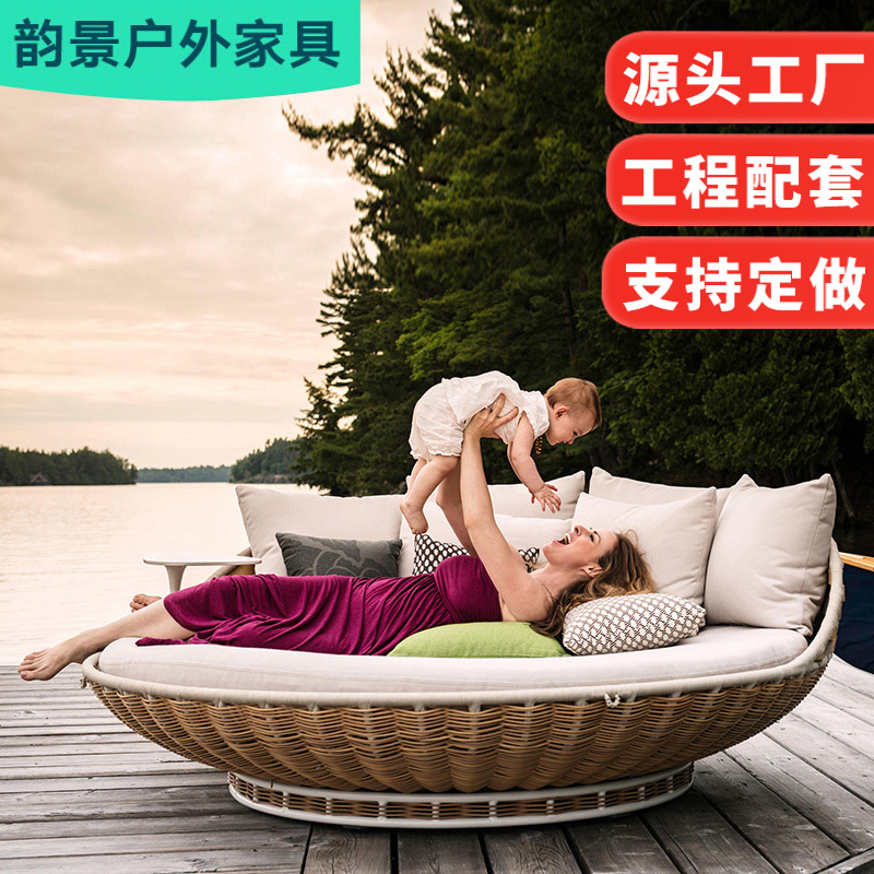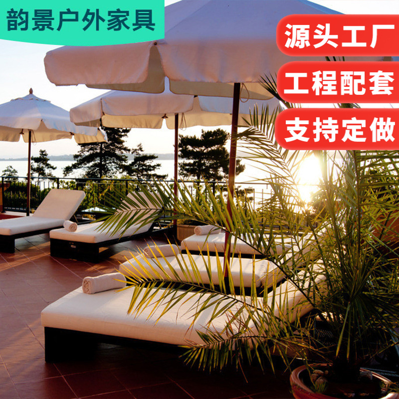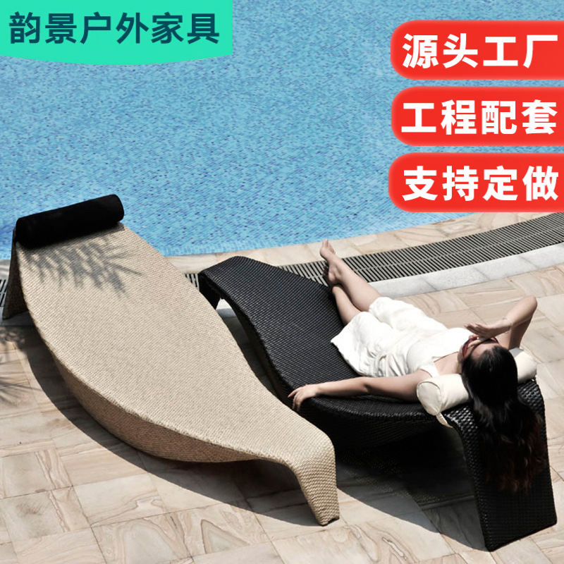 屋外藤編寝椅子レジャーホテル民宿露天プールビーチ椅子別荘庭園防水屋外ベッド
