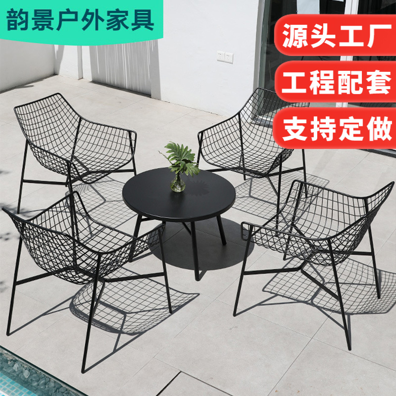 户外桌椅花园庭院售楼部洽谈休闲铁艺椅子室外露天防水阳台三件套