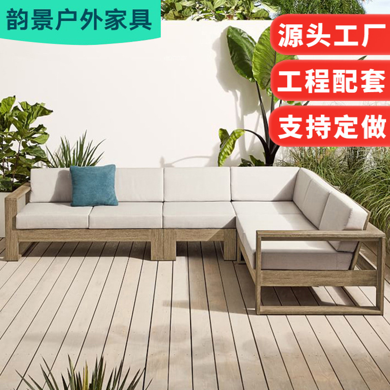 北欧チーク屋外ソファ組み合わせ庭別荘陽光房露店花園実木屋外防水ソファー