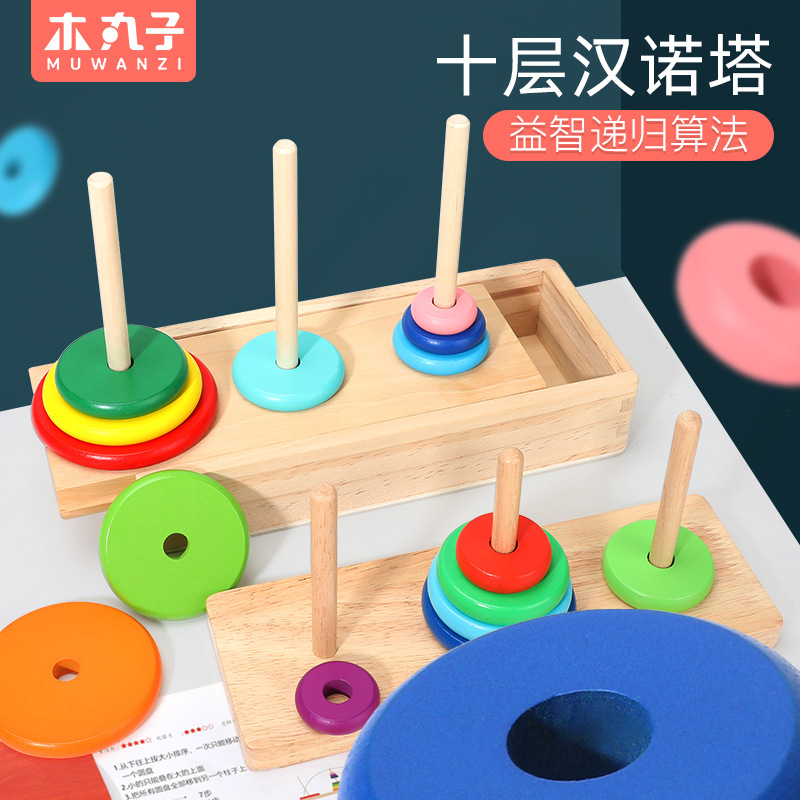 木のハンノタの10階の小学生は早く子供の益智のゲームの論理の思惟の通関するおもちゃのハノイの塔を教えます。