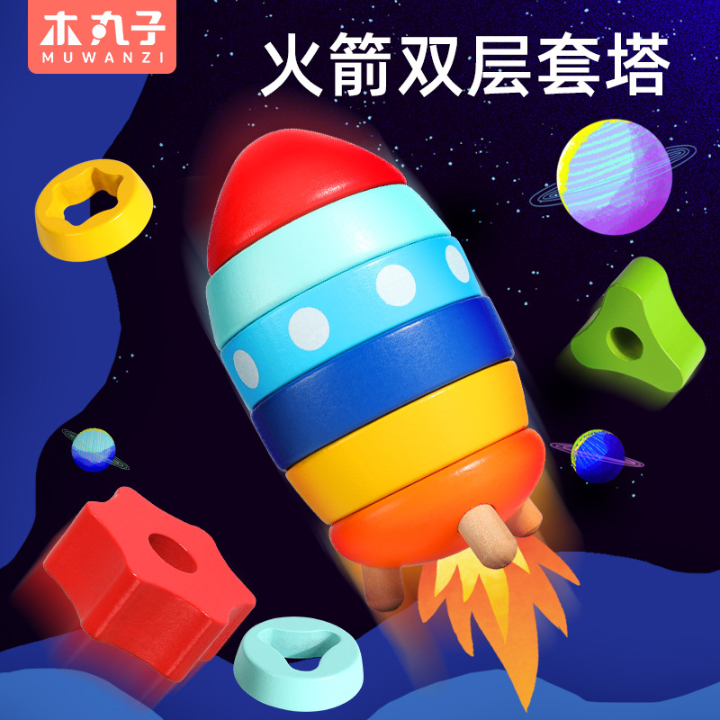 赤ちゃんの積み重ねの虹のロケットの二重の軌道の輪のおもちゃの輪の虹の輪の赤ちゃんの早教の益智のおもちゃ