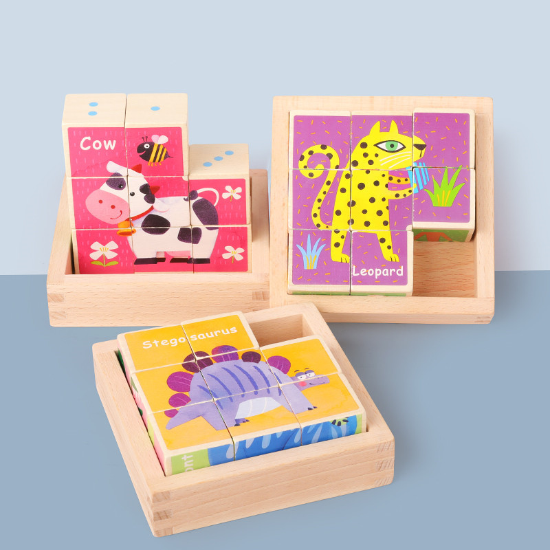 9粒六面絵子供3d立体恐竜動物積み木早教ジグソーパズル
