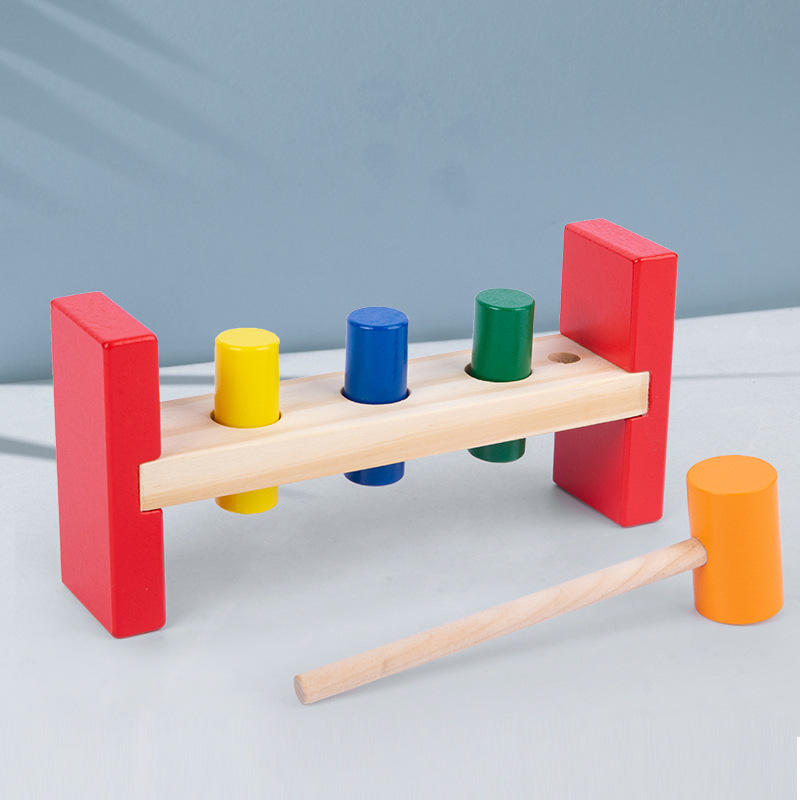カラー杭打ち台2-3歳赤ちゃん知育早教乳幼児趣味打台木製玩具