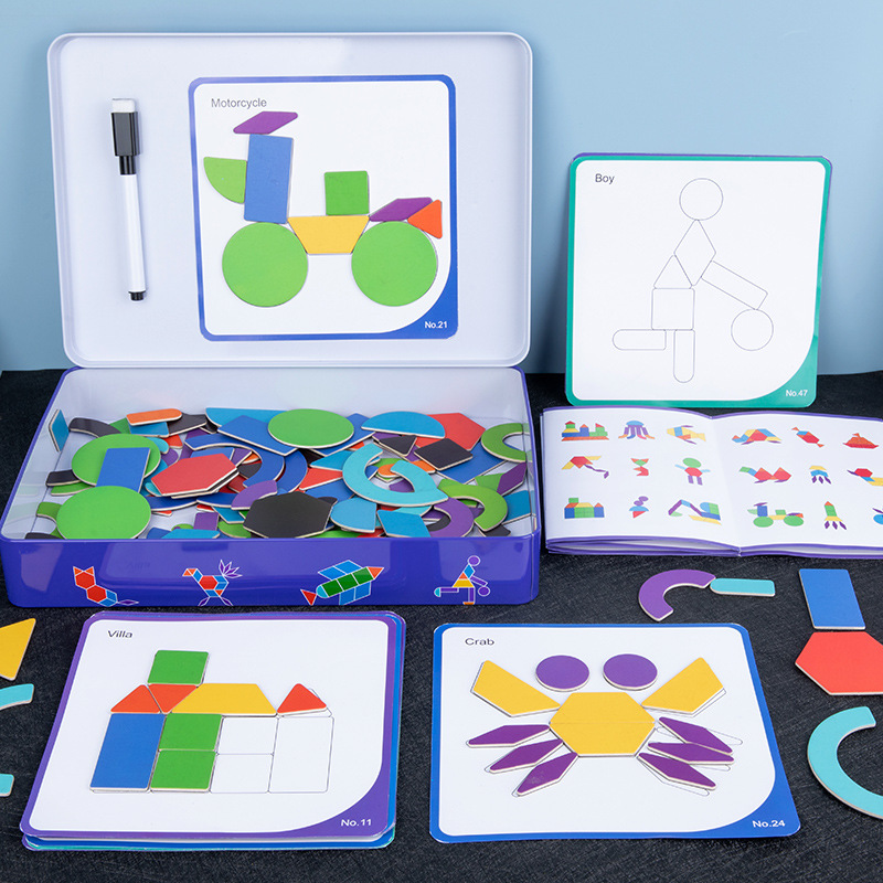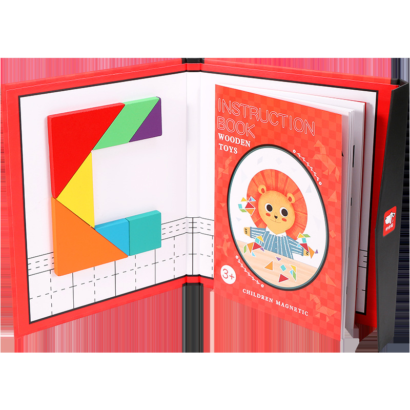 子供の益智早教のおもちゃの七色の磁気の七巧板の教具の小学生の木製の本の七巧板のパズルボード