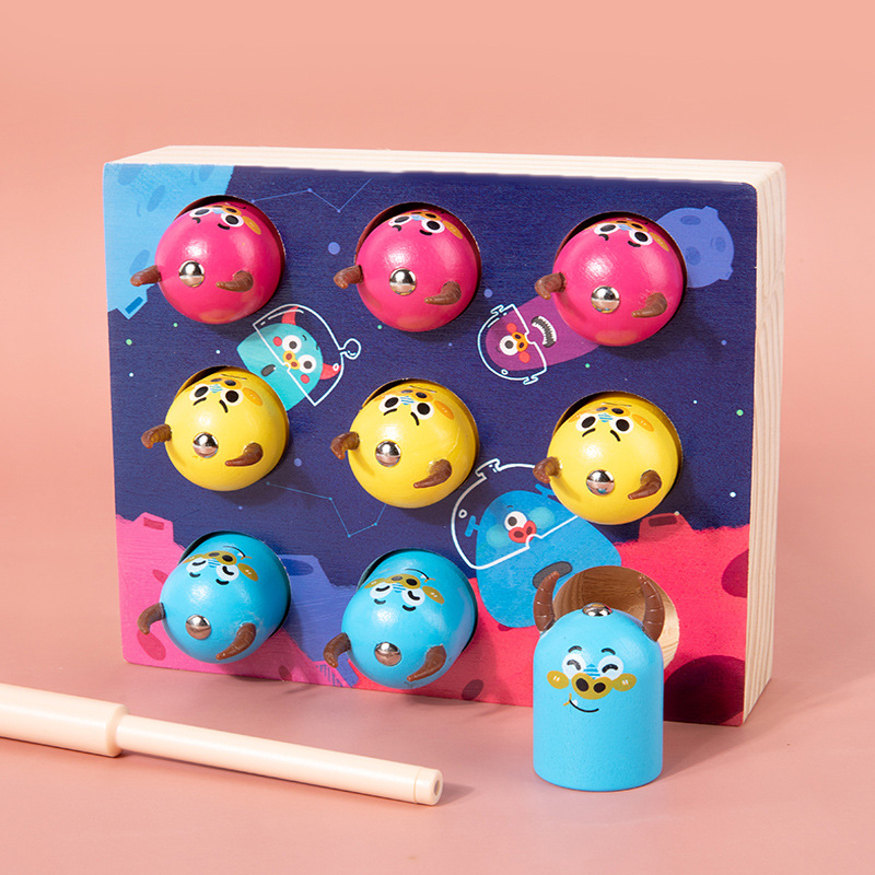 子供の木製の趣味は怪獣を打ちます。磁気釣りゲームは怪獣を打ちます。
