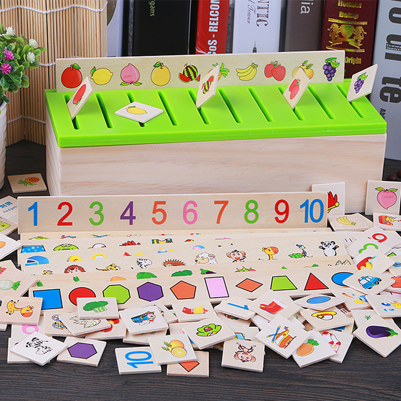 子供の早教知識分類箱蒙台シャトル教具幼児啓蒙動物野菜認知木製玩具