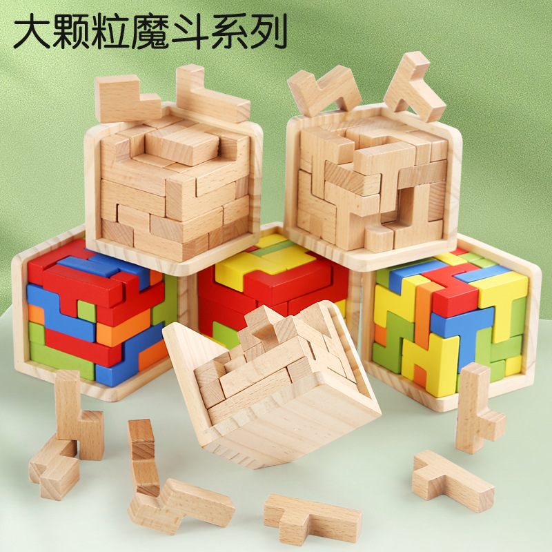 木製 3D 立体ビルディングブロック子供の教育キューブストリングおもちゃさまざまなビルディングブロックキューブノスタルジックなおもちゃ