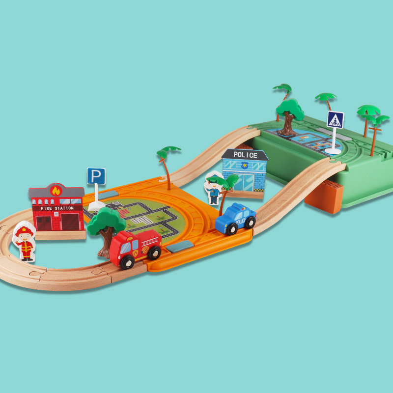 子供のおもちゃの小さい列車の軌道のセットの積み木の木のおもちゃの男の子の模型の車の滑車の2-8歳