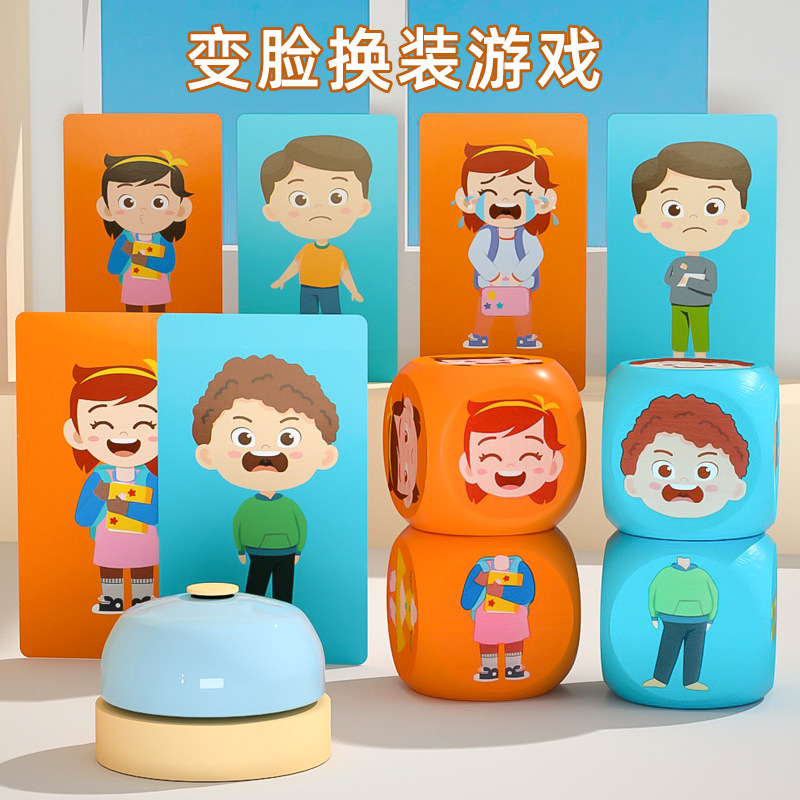 現物の子供の積み木の漫画は顔を変えて親子のインタラクティブな益智のパズルのデスクトップの木製のゲームに着替えます。