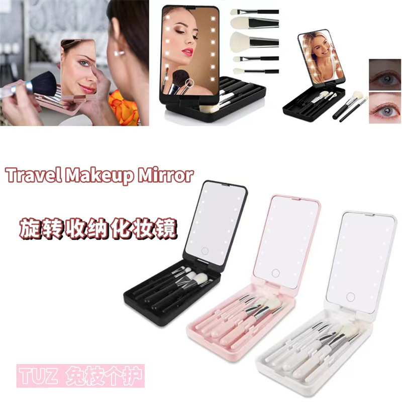 Led化粧鏡化粧鏡折り畳み可能360度回転化粧鏡化粧ブラシ付き収納ケース鏡収納ケース