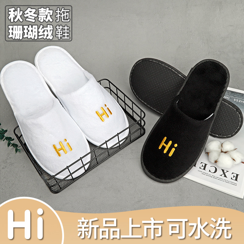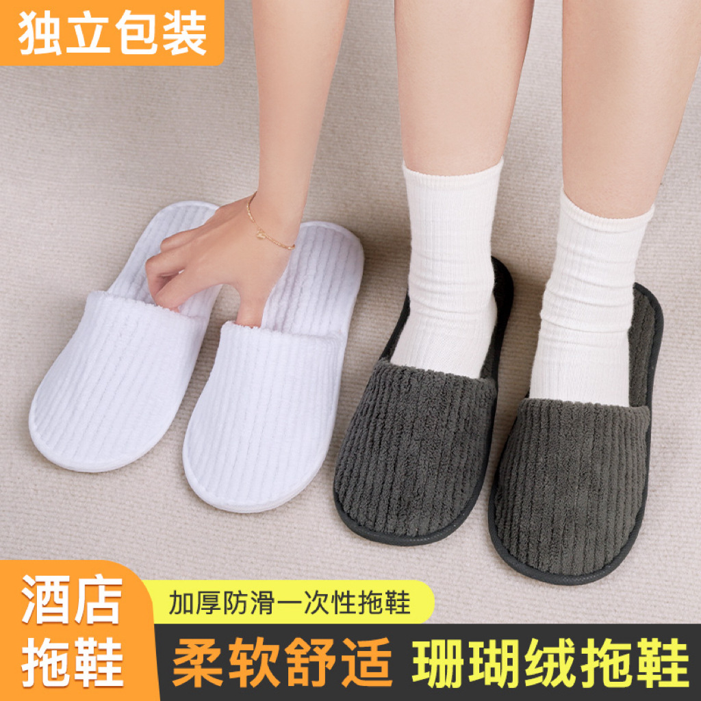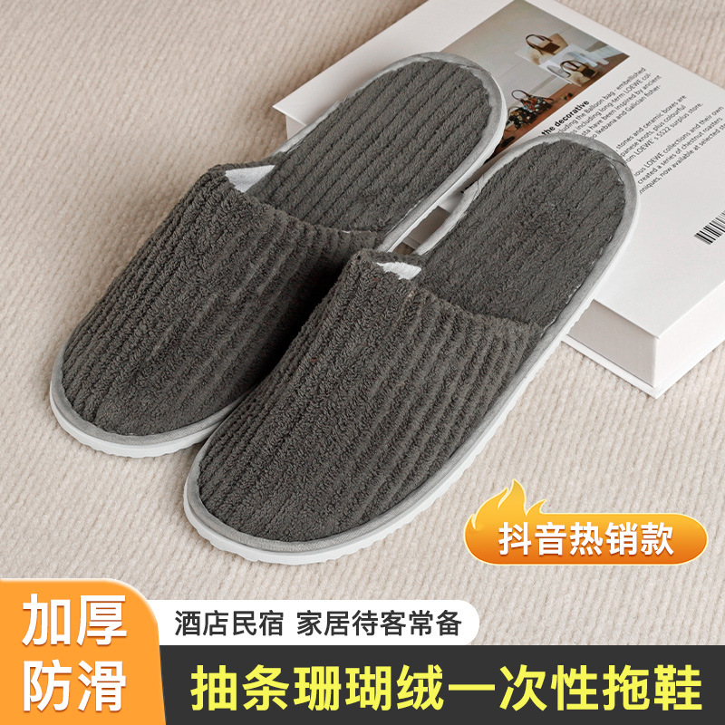 下流地域で人気のホテル用使い捨てスリッパ、コーラルベルベット、秋冬用厚底、家庭用、来客用、再利用可能、滑り止め