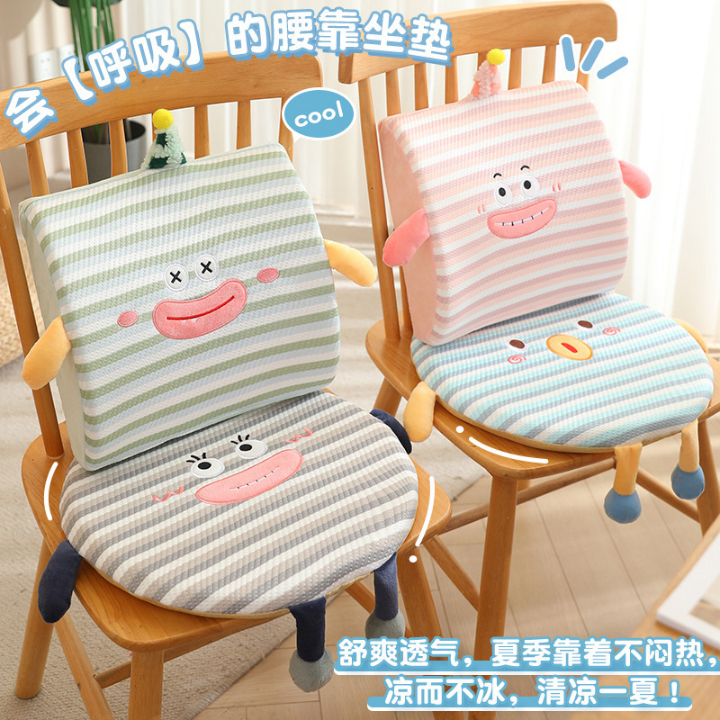 ドーパミン夏アイスシルククッションストライプ漫画低反発腰サポートオフィス腰枕座りっぱなしお尻クッション