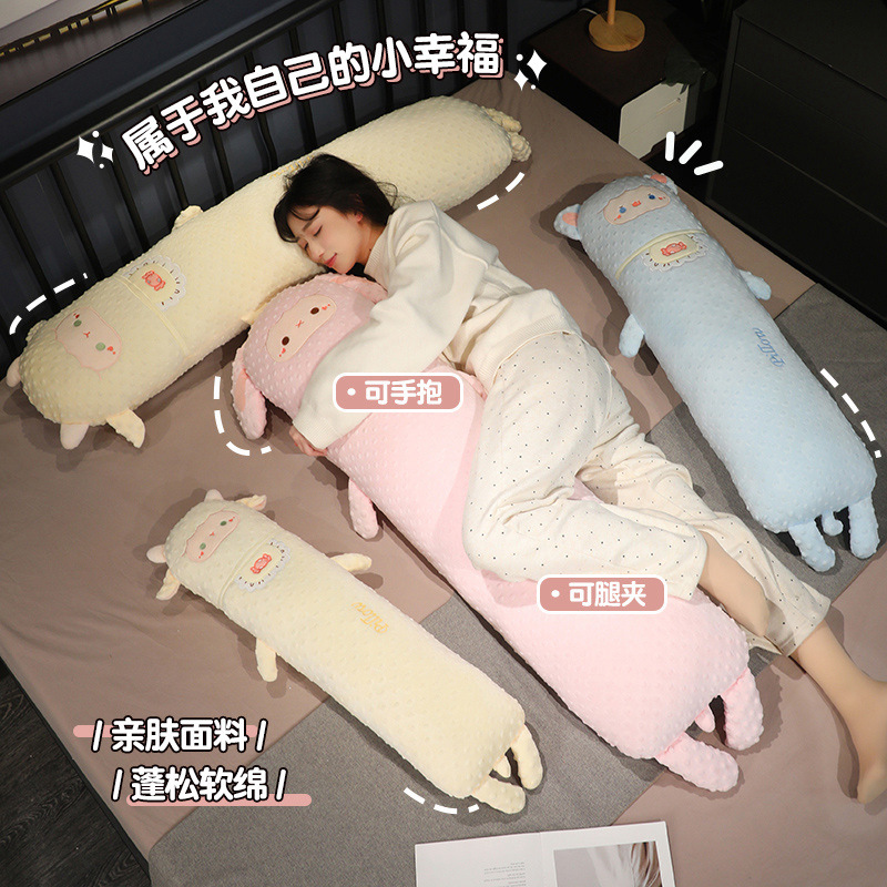 アニメかわいい羊の泡が長いぬいぐるみ抱き枕ソファークッション妊婦が寝ている寝室のベッドに足を挟んで枕を抱きます。