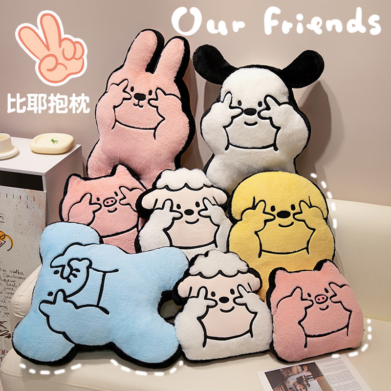 国境を越えた漫画の線の動物のビエは枕の卵黄の犬の粉の豚のソファーを抱いて枕の女子学生に寝て人形のプレゼントを待ちます。
