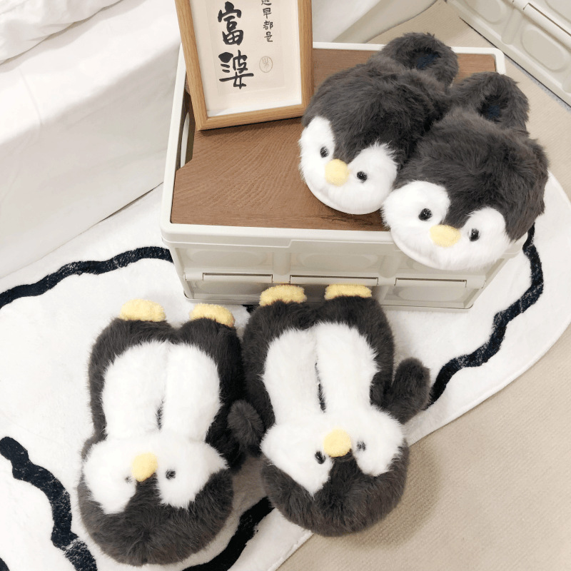 冬のアニメかわいいペンギンのぬいぐるみスリッパの高低バッグと保温綿スリッパの滑り止め柔らかい底の家の靴