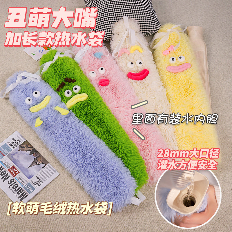 国境を越えたアニメの大きな目の醜い萌えモンスターの長い湯たんぽ注水式pvcゴムの温かい手