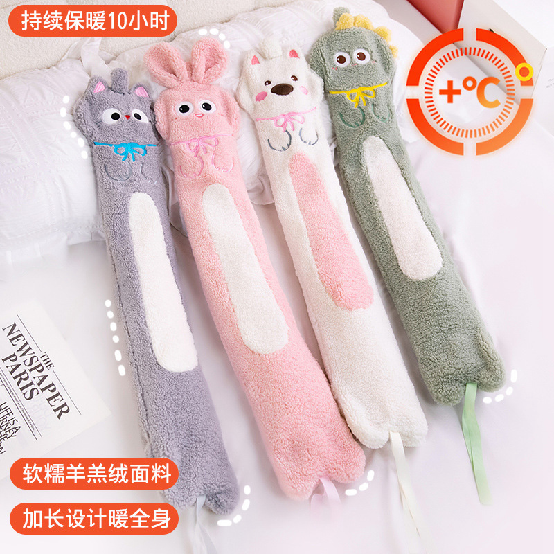 漫画の長い恐竜の粉のウサギのぬいぐるみのゴムの湯たんぽの冬の女子学生の寮はお腹を覆って足を温めて水の袋を入れます。