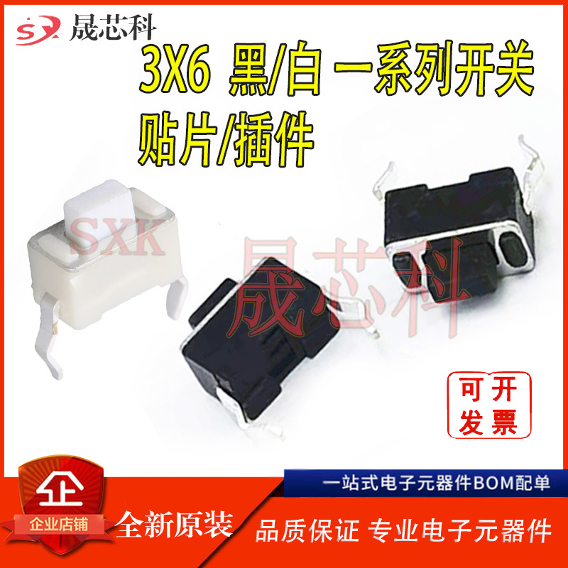 3x6x4.3パッチタッチスイッチ3*6*5白黒2脚ボタンスイッチ3*6*4.5