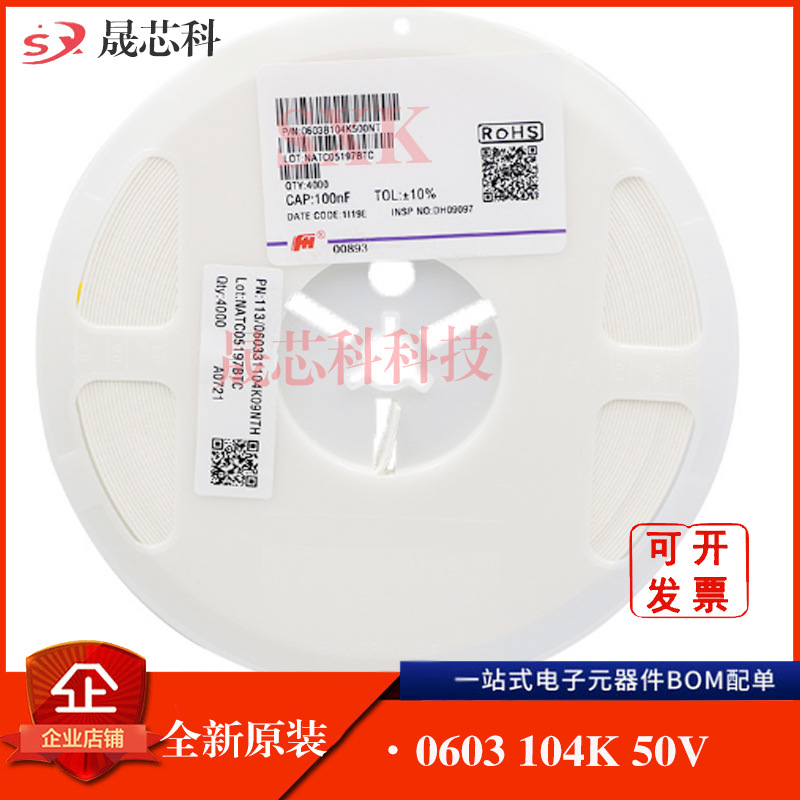 チップコンデンサ060104 k 50V x 7r 10% 0603B104K500NT mlccサプライヤー