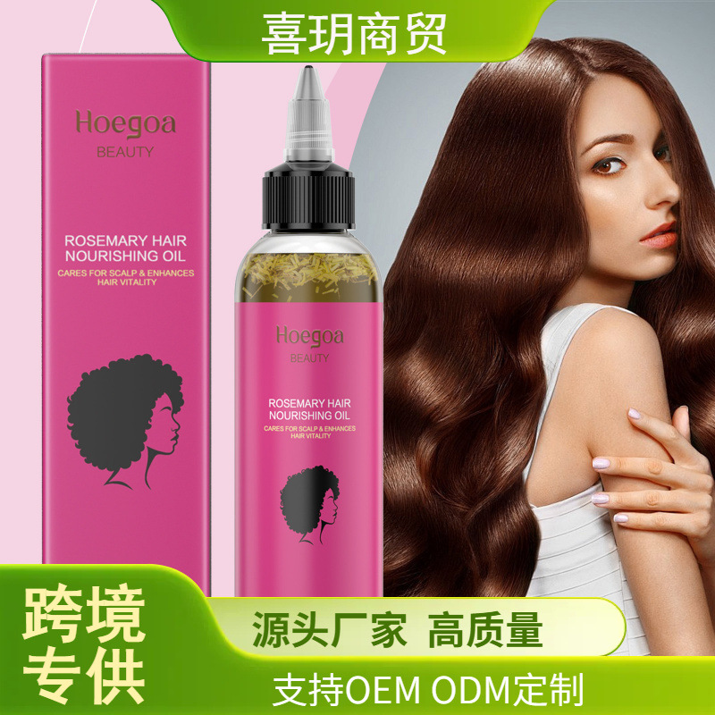 Hoegoa ローズマリー ヘアケア エッセンシャル オイルは、縮れた髪に栄養を与え、落ち着かせ、滑らかにし、滑らかで光沢のある髪にします。