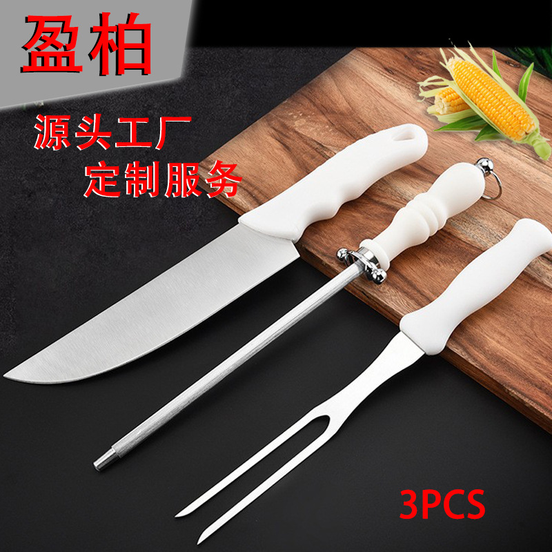 メーカー直販ステンレス料理人料理刀研ぎ棒3点セットスライス肉切り刀果物刀キッチン刃物