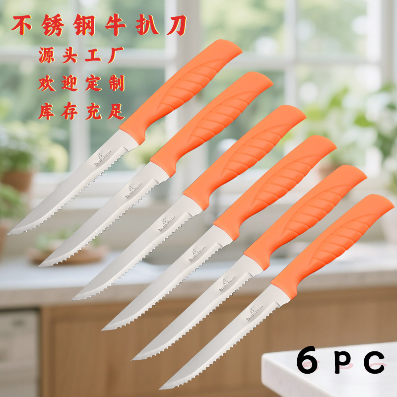 ステンレス鋼ステーキナイフプラスチックハンドルギザギザステーキナイフパンナイフホテルカッター洋食ステーキ羊チョッキナイフ