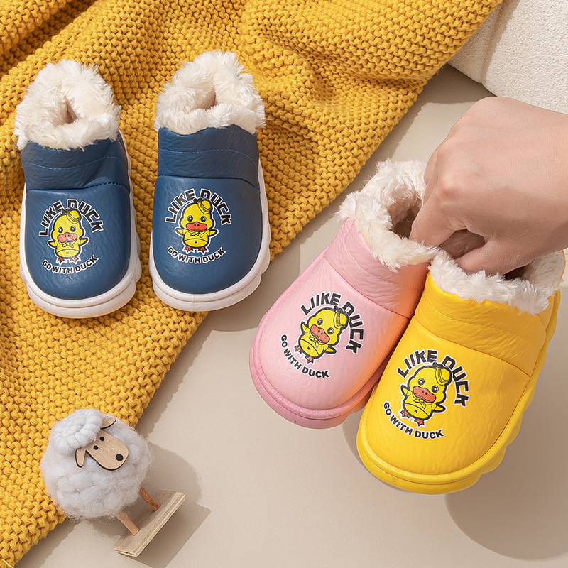 子供の皮の面の黄色のアヒルの綿の靴の男女の子供の保温の漫画の綿の靴の厚い底の冬のベルベットの厚い足
