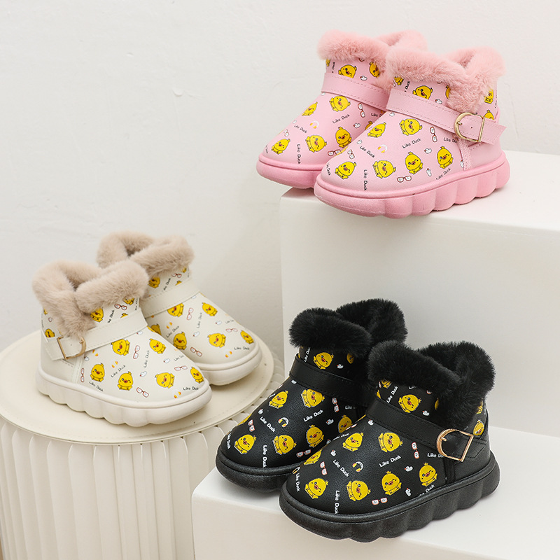 冬の保温快適滑り止め綿靴男女子供の皮面アニメプリント雪綿靴