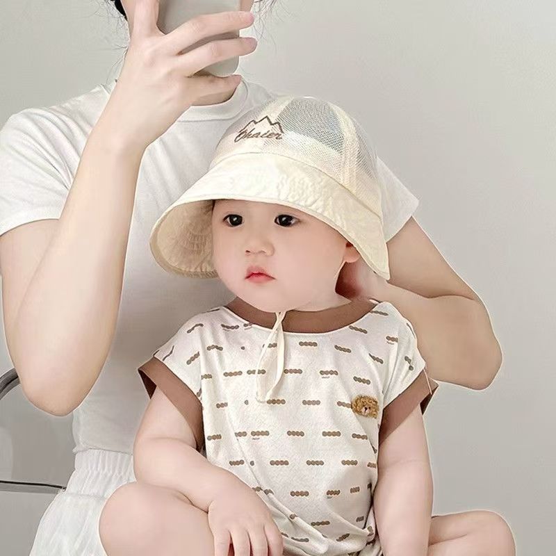 韓国系子供帽子夏の薄いモデルの大きなつばの日よけ日焼け止め通気メッシュ漁師帽子男女赤ちゃん盆帽子