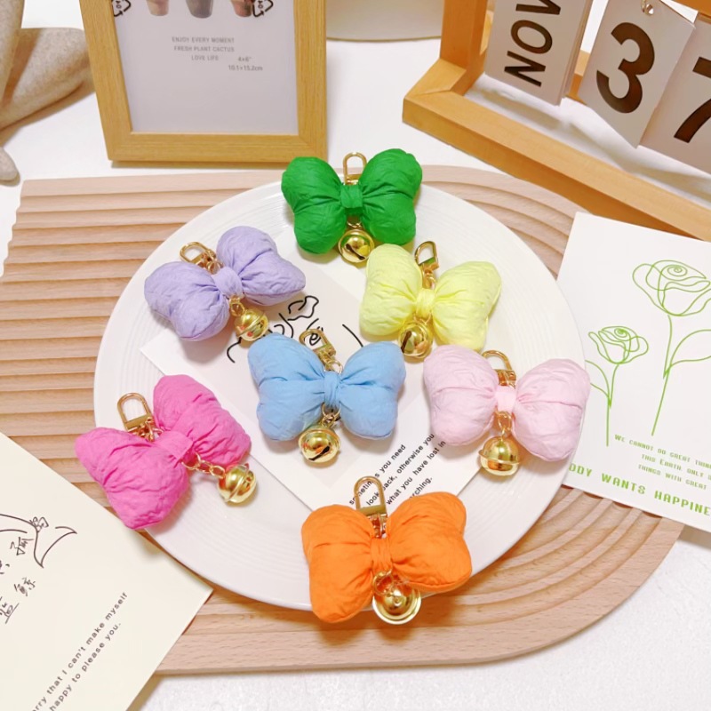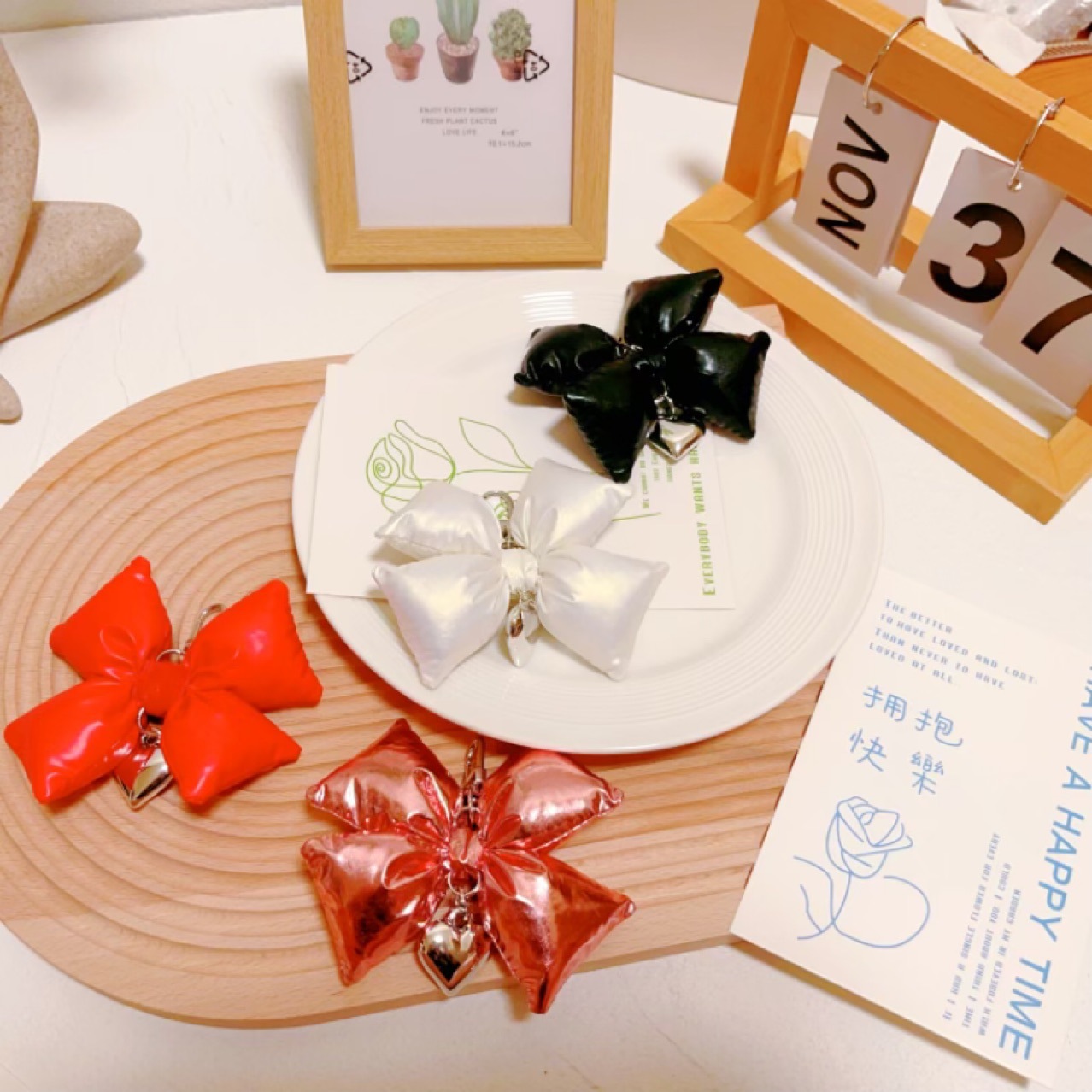 韓国の甘いリボンラブキーホルダーマカロンカラー綿入りバッグペンダントクリスマスベルペンダント