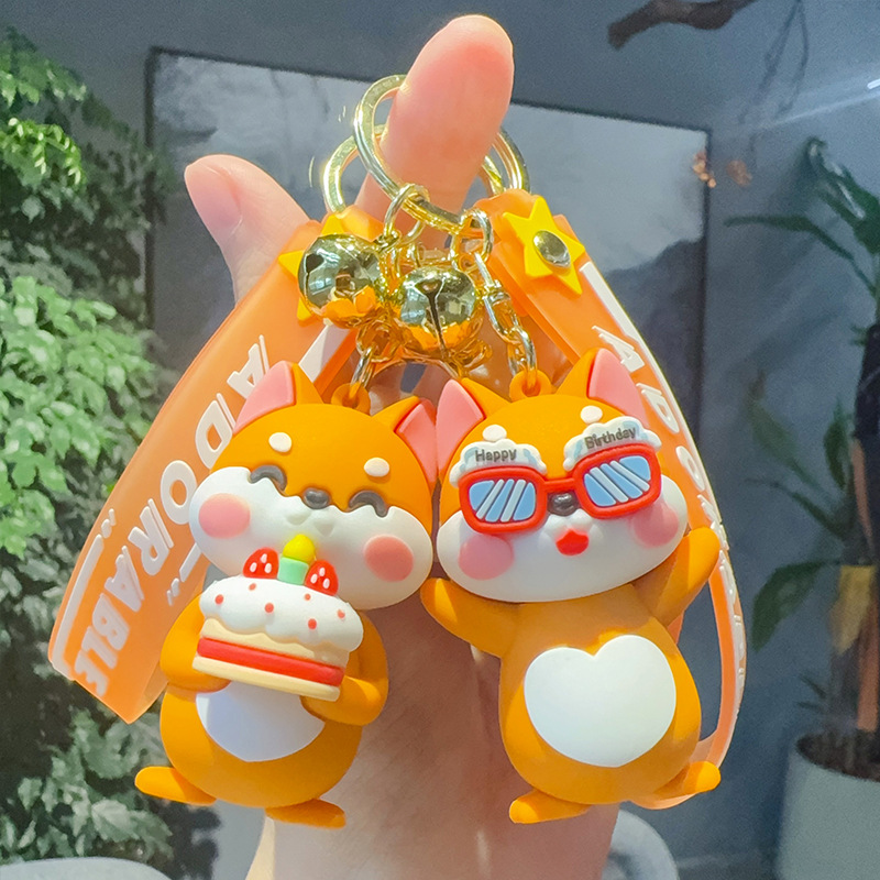 かわいい小さな柴犬パーティーのキーホルダー漫画pvc公仔バッグストラップ自動車キーホルダー小プレゼント卸売り
