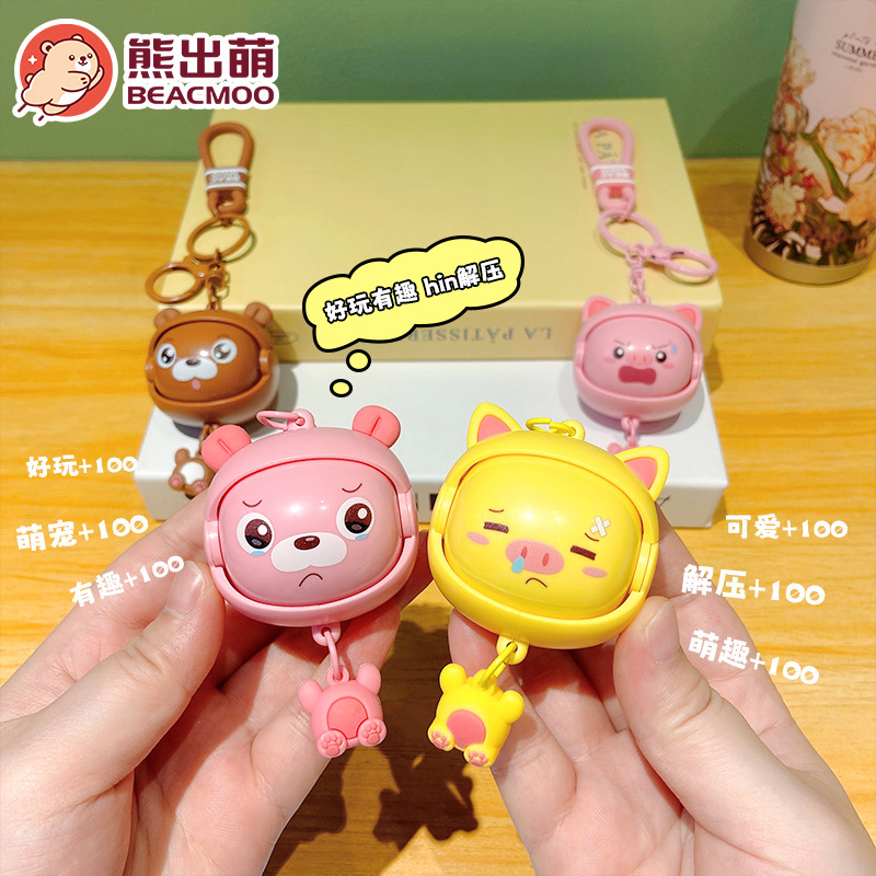 かわいいカワウソと子豚の回転キーホルダー減圧顔変更おもちゃキーホルダーレディースバッグペンダント小さなギフト