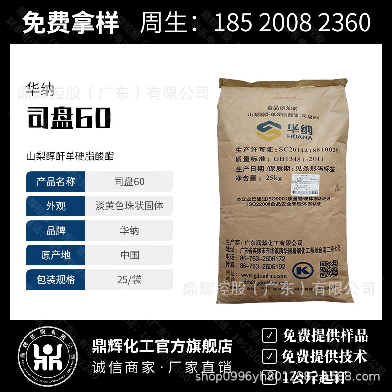現物潤華納司盤60 (SP-60) 化粧品級食品級乳化剤S-60