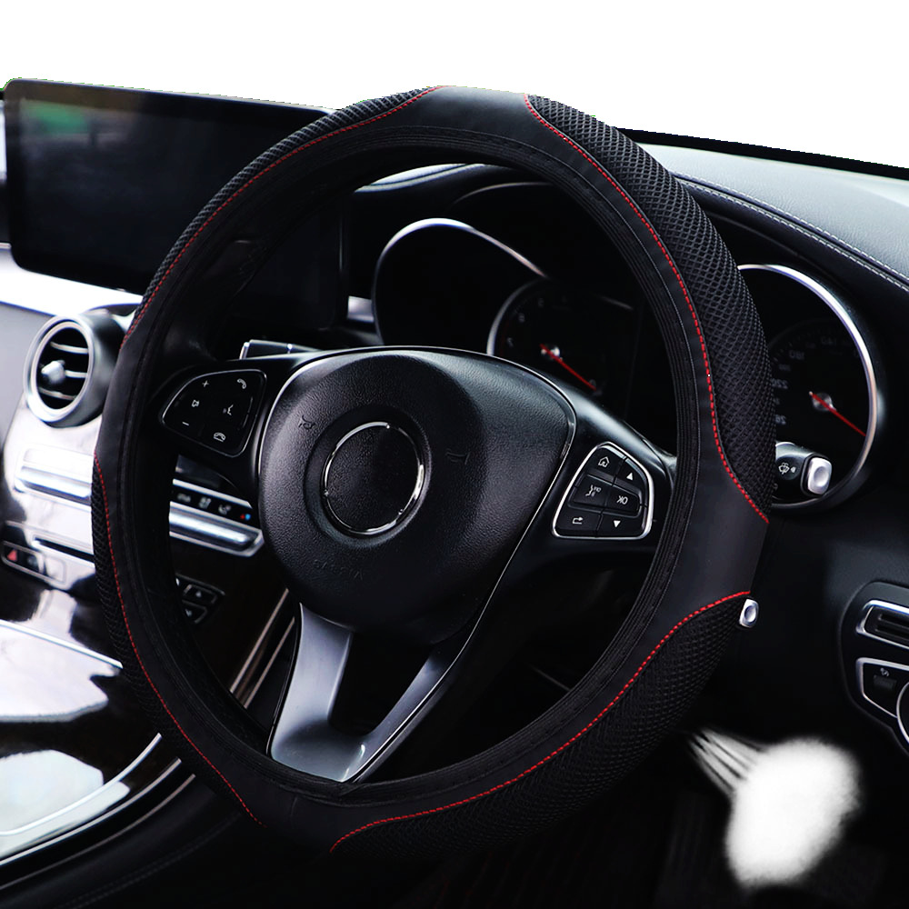 インナーリムなしメッシュレザーインナーリムなし弾性ステアリングホイールカバー車のハンドルバーカバーオールシーズンクロスボーダーAliExpressユニバーサル