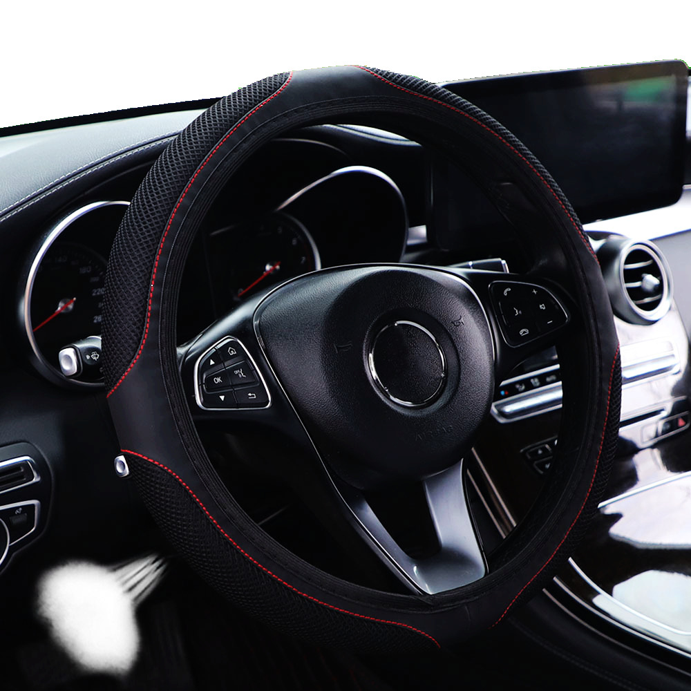 インナーリムなしメッシュレザーインナーリムなし弾性ステアリングホイールカバー車のハンドルバーカバーオールシーズンクロスボーダーAliExpressユニバーサル