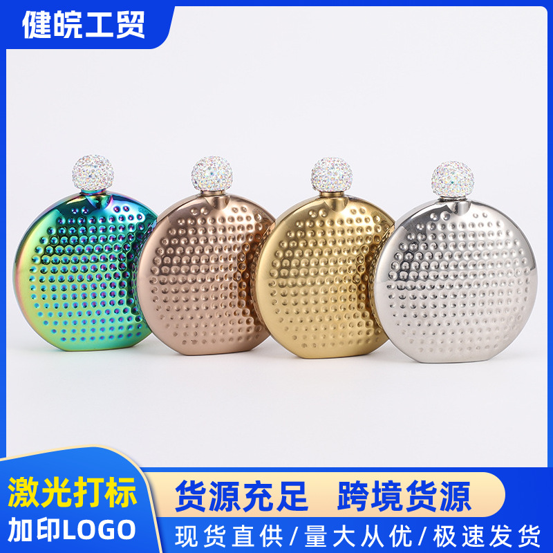 携帯304ステンレスの徳利を持ち歩いて、円形のミニ鏡面のエンボスの小さい徳利を持っています。