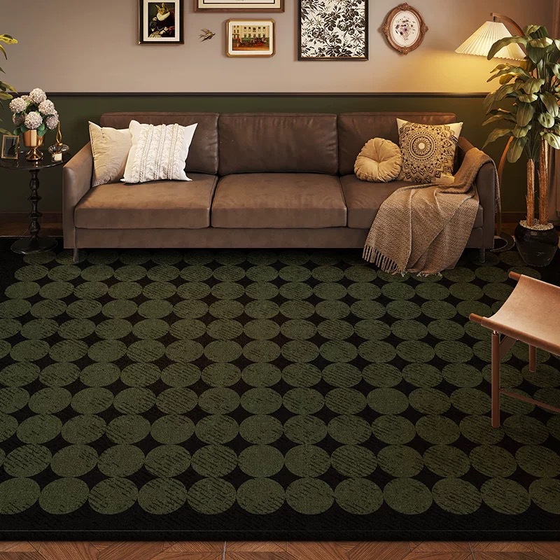 中古風グリーン格子パイルカーペット寝室リビングソファーティーマット防水はレトロなマットを拭くことができる