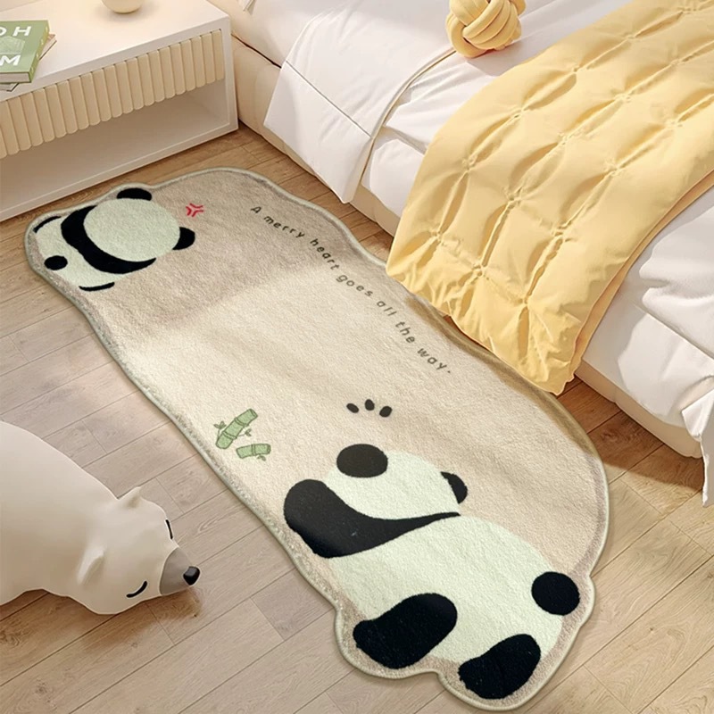 漫画のパンダのリビングルームの寝室のマットのかわいい風のベッドのサイドのじゅうたんの長い布のぬいぐるみのマットの畳のベッドの前のじゅうたん