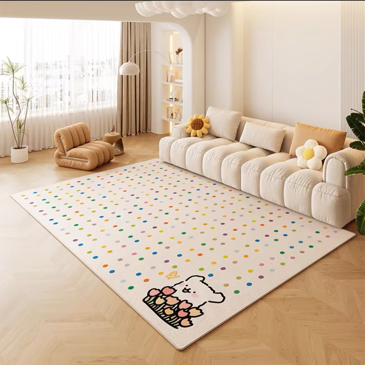 波点クリーム風漫画客間じゅうたん2024新型寝室ベッドサイドじゅうたんは洗濯しないで滑り止めのティー毛布を拭くことができる