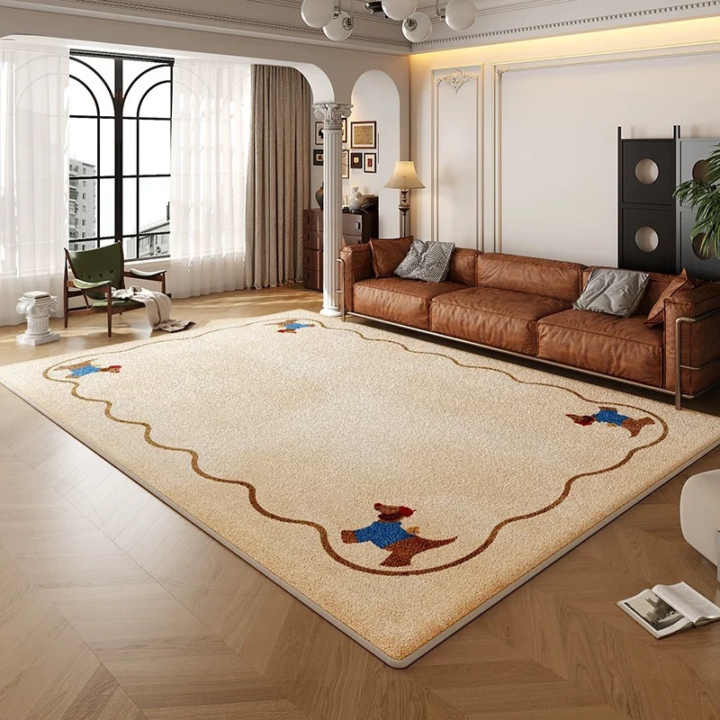 クリーム風客間じゅうたん寝室ベッドサイドじゅうたんフランス風ソファ茶卓高級感はベルベットマットの滑り止めを真似ている