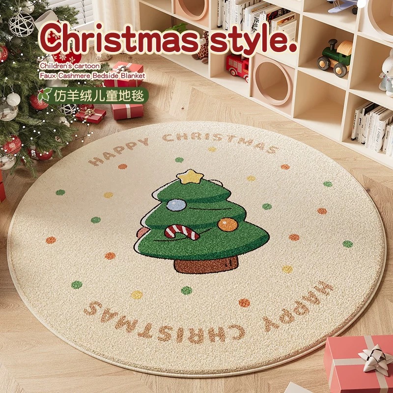 丸いクリスマスカーペットクリスマス風漫画マットお祝い祭り雰囲気赤い足マットかわいい風子供カーペット