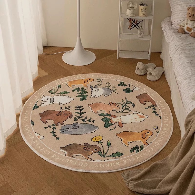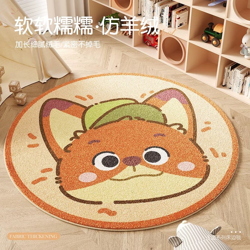 漫画かわいい子供部屋カーペット寝室円形フロアマットベッドサイドブランケット书斎椅子厚いぬいぐるみ読書エリアマット