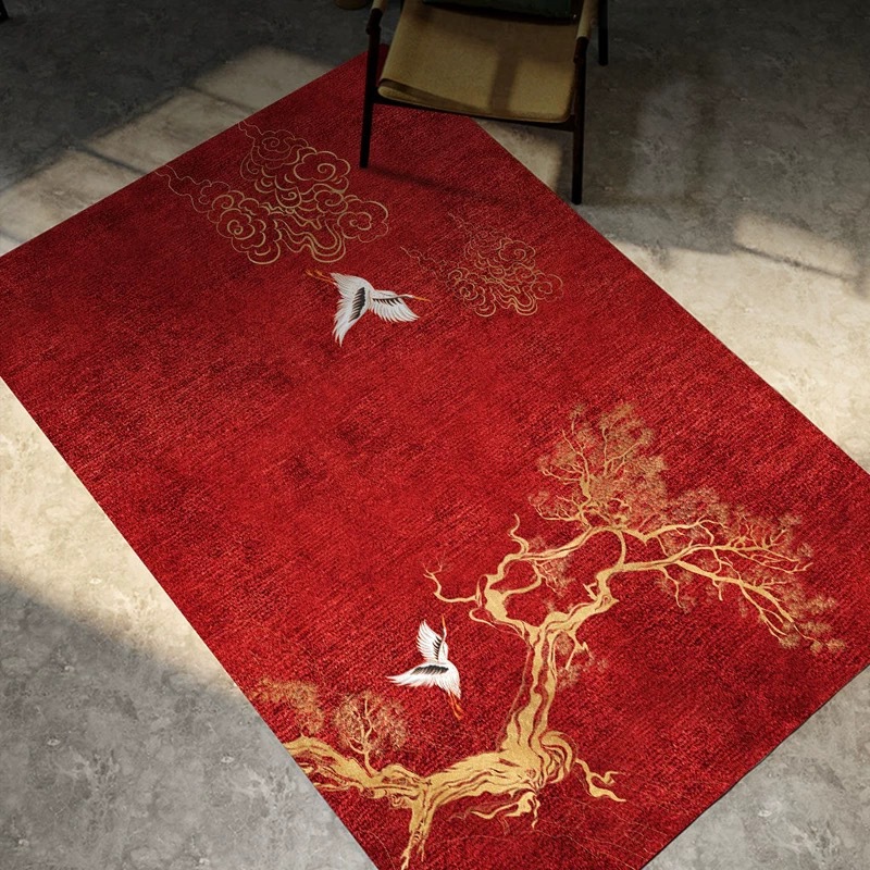 新中国式国風客間ソファーじゅうたん滑り止め吸水リング赤い花鳥茶卓マット寝室ベッドサイド毛布