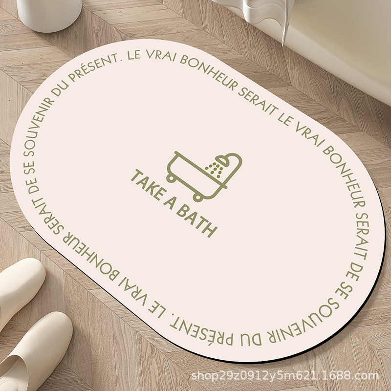浴室マットレトロ北欧珪藻泥マット滑り止め吸水速乾足マットトイレ入り口楕円足マット