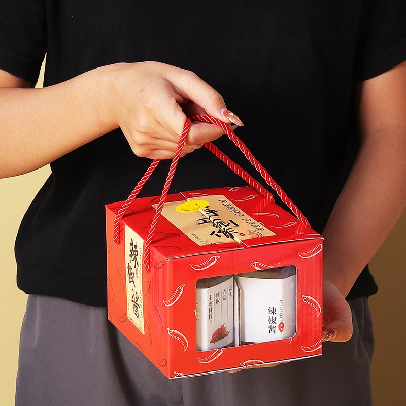 チリソース包装ギフトボックス定ピーナッツバター段ボール箱4本入手提げケチャップギフトボックス空製